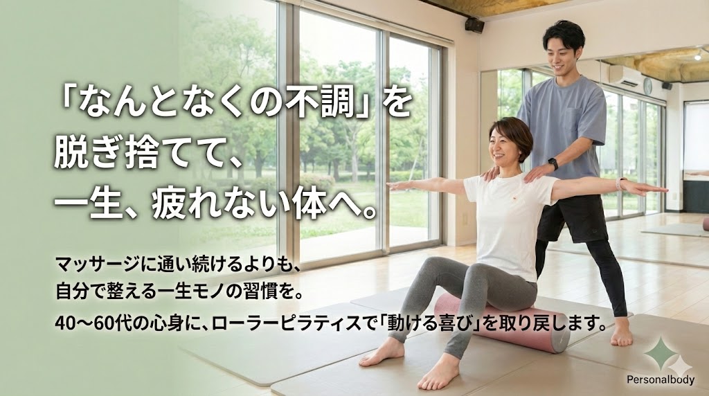 肩や腰の不調を抱えながら将来の体に不安を感じている40〜60代の女性に向けた内容です。